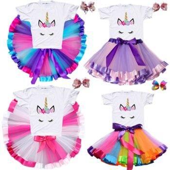 Girls Rainbow Color Clothing Set with Skirt Tutu