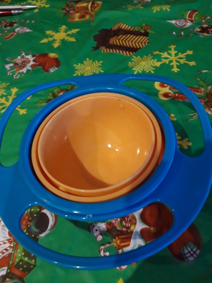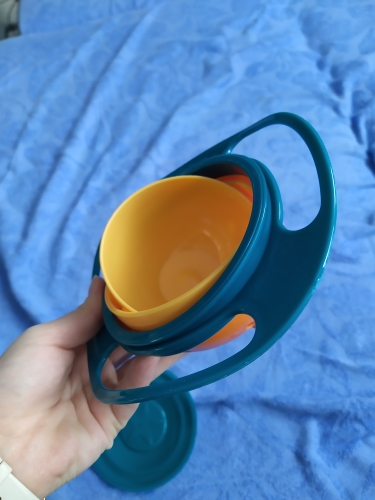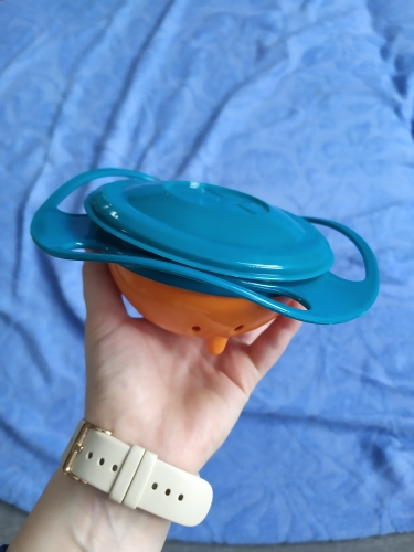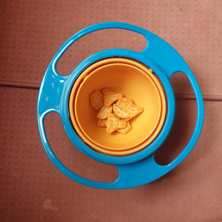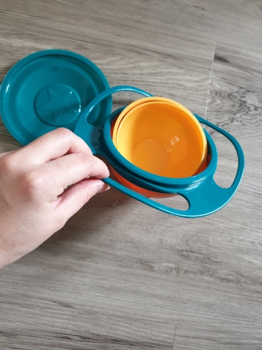 Try this 360-Degree Rotating Plastic bowl designed to keep your baby’s food in the bowl no matter how your baby turns the bowl.