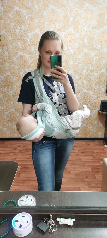 ⭐️ In a sling cradle position, perfect for breastfeeding or sleep during the first 3 months of baby’s life