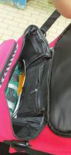 It's perfect. Bigger than I had in mind, though I knew the measurements. The fabric with vivid colors and quite quality. Surprised me. It brings inside zip pocket and split gums, outside has two compartments in front and one behind. You can carry it with cart handles and regular bag handles. It has arrived in just 8 days in Spain. Well packed. She's very happy and on top of it she put in some little presents.