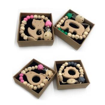 Animal Shaped Organic Wood Baby Teether with Grasping Toy 2 pcs Set