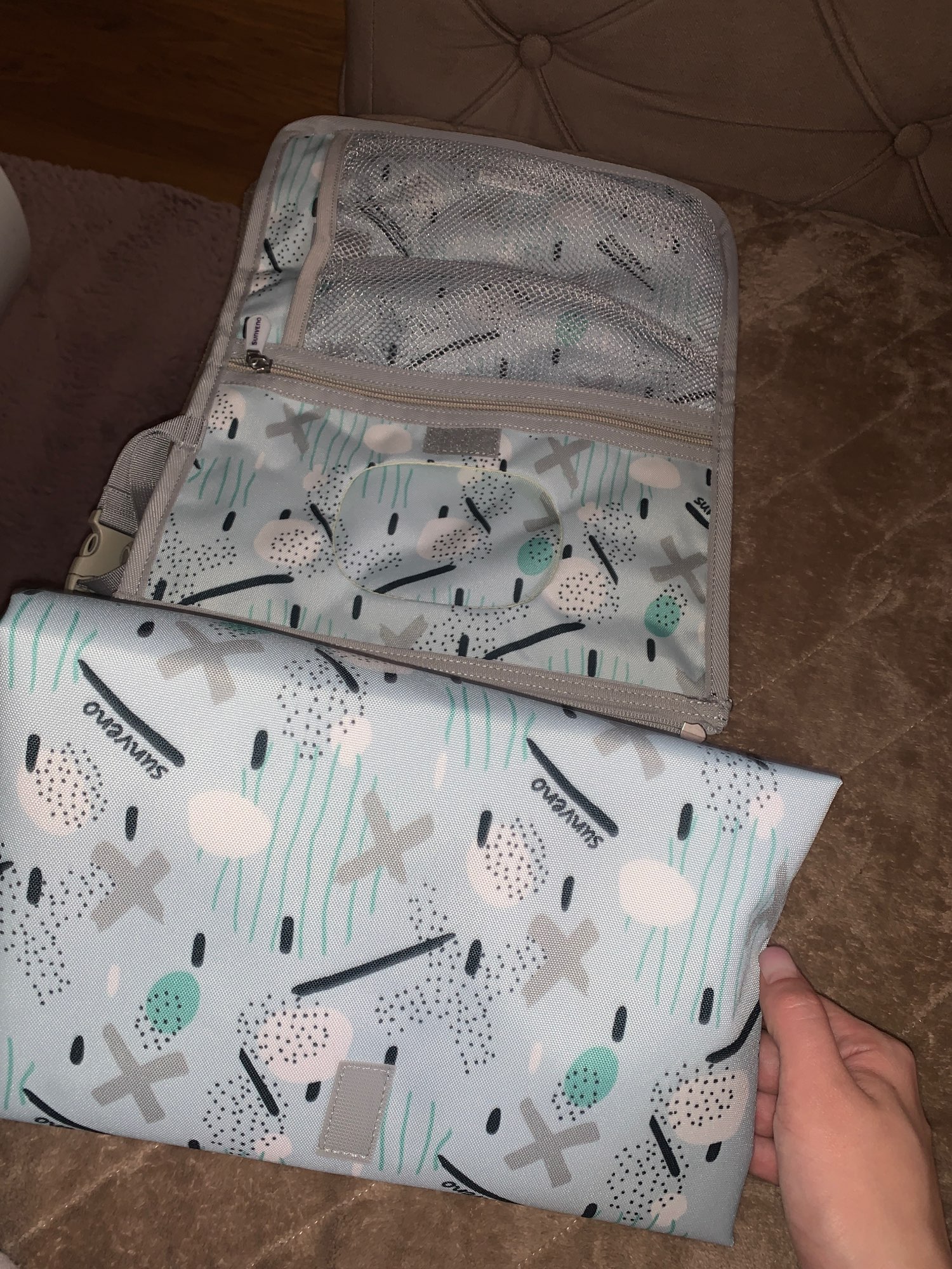 ⭐️ Folds up like a small purse/clutch with a handle strap to hang around your wrist or the stroller. Simply unfold it to its full size for your baby’s diaper change.