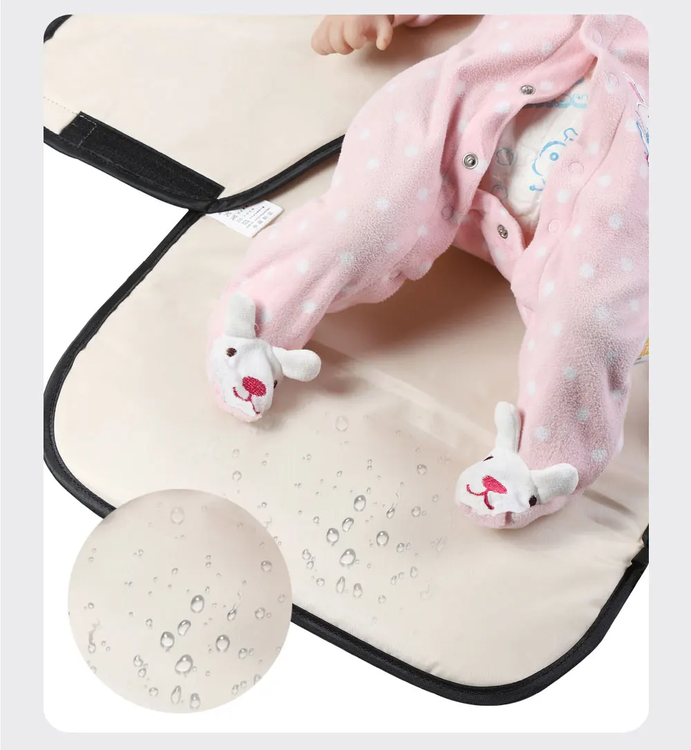The Waterproof Diaper Changing Pad is very portable, as it can be folded into a portable size that you can put in your bag or hang it on the stroller.